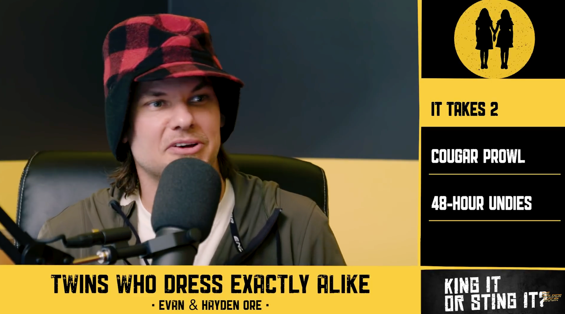 Illustrated icons for weekly King It or Sting It? segment of King and the Sting podcast hosted by Brendan Schaub and Theo Von.